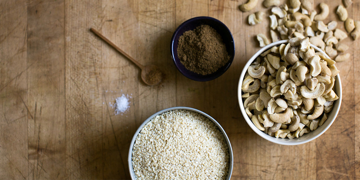 Cashews provide an excellent source of protein, can improve blood sugar control and help with weight loss. They are especially rich in unsaturated fats, which are linked to a lower risk of heart disease. They are also low in natural sugar. Found in Cashew Cardamom Almond Butter, Cashew Curry Tahini, Coffee Cashew Almond Butter, Elderberry Cashew Almond Butter, Pistachio Ginseng Cashew Butter, Salted Caramel Almond Butter.