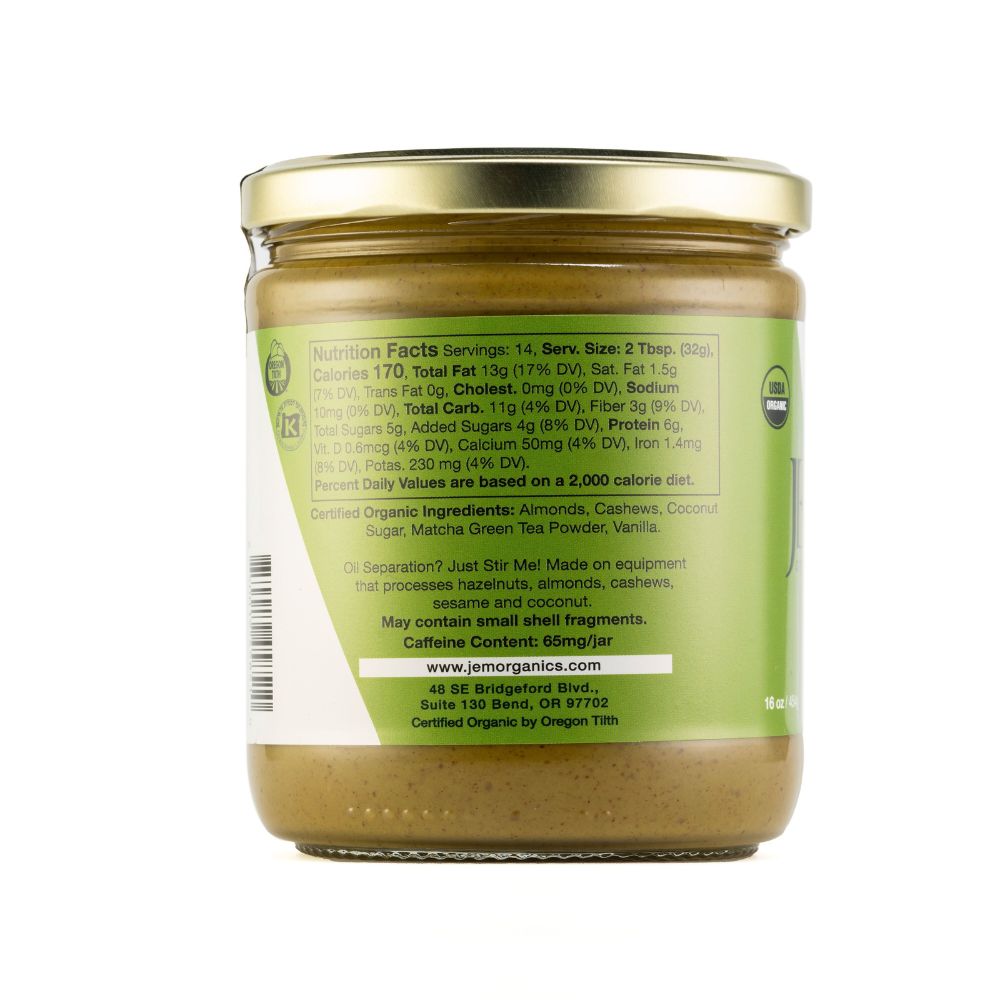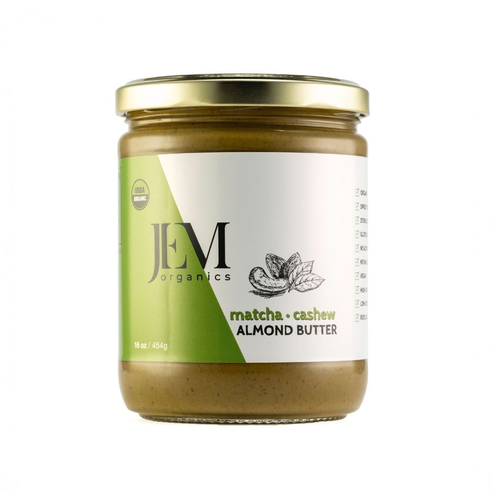Experience the rich, vibrant flavor of JEM Organics' Matcha Cashew Almond Butter - a new highly anticipated flavor, finally here! Crafted with organic cashews, almonds, and ethically sourced matcha, this creamy blend offers a clean, energizing twist on indulgence. Spread it, swirl it, or savor it by the spoonful. Every bite is a fresh take on the nut butter you love.